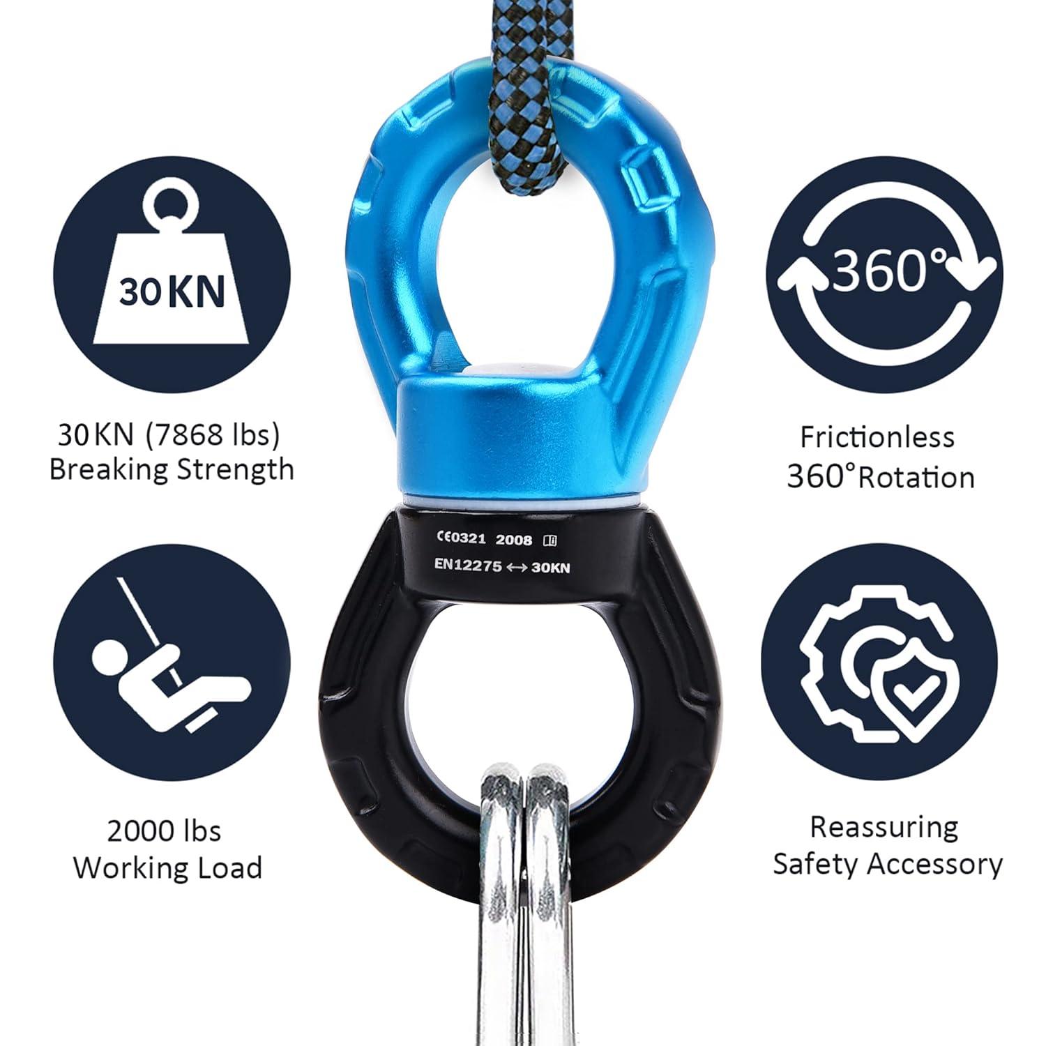 Swing Swivel Safer For Swinging: Made of 7075 aviation aluminum (forged aluminum magnesium alloy), the breaking strength of PACEARTH swing swivel is up to 35KN( 7868 lbs), which is stronger more durable. With recommended working load limits, it provides a safe swinging experience.